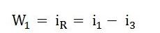 Instantaneous power measured by the wattmeter, W1 is given by,