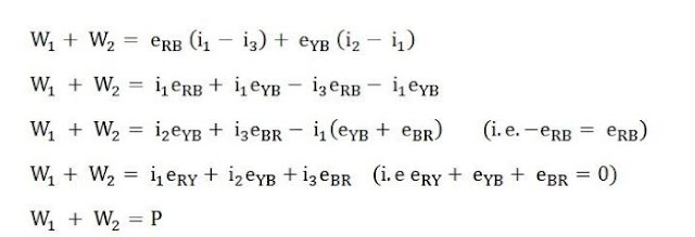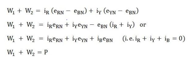 The total 3 phase power will be the sum of power measured by watt meters W1 and W2